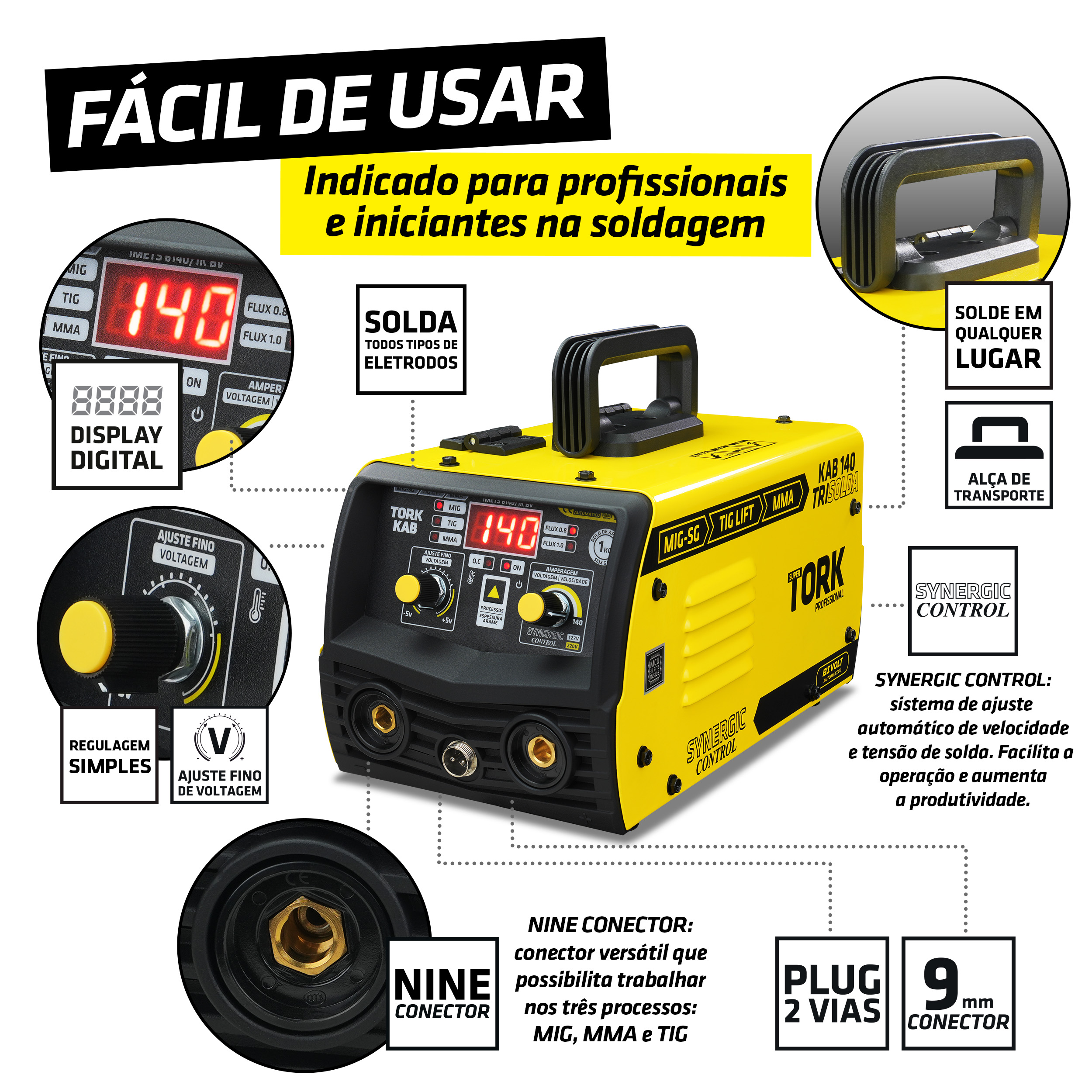 MÁQUINA INVERSORA DE SOLDA MIG SINÉRGICO,TIG,ELETRODO MMA KAB 140A BIVOLT (TORK SOLDA)