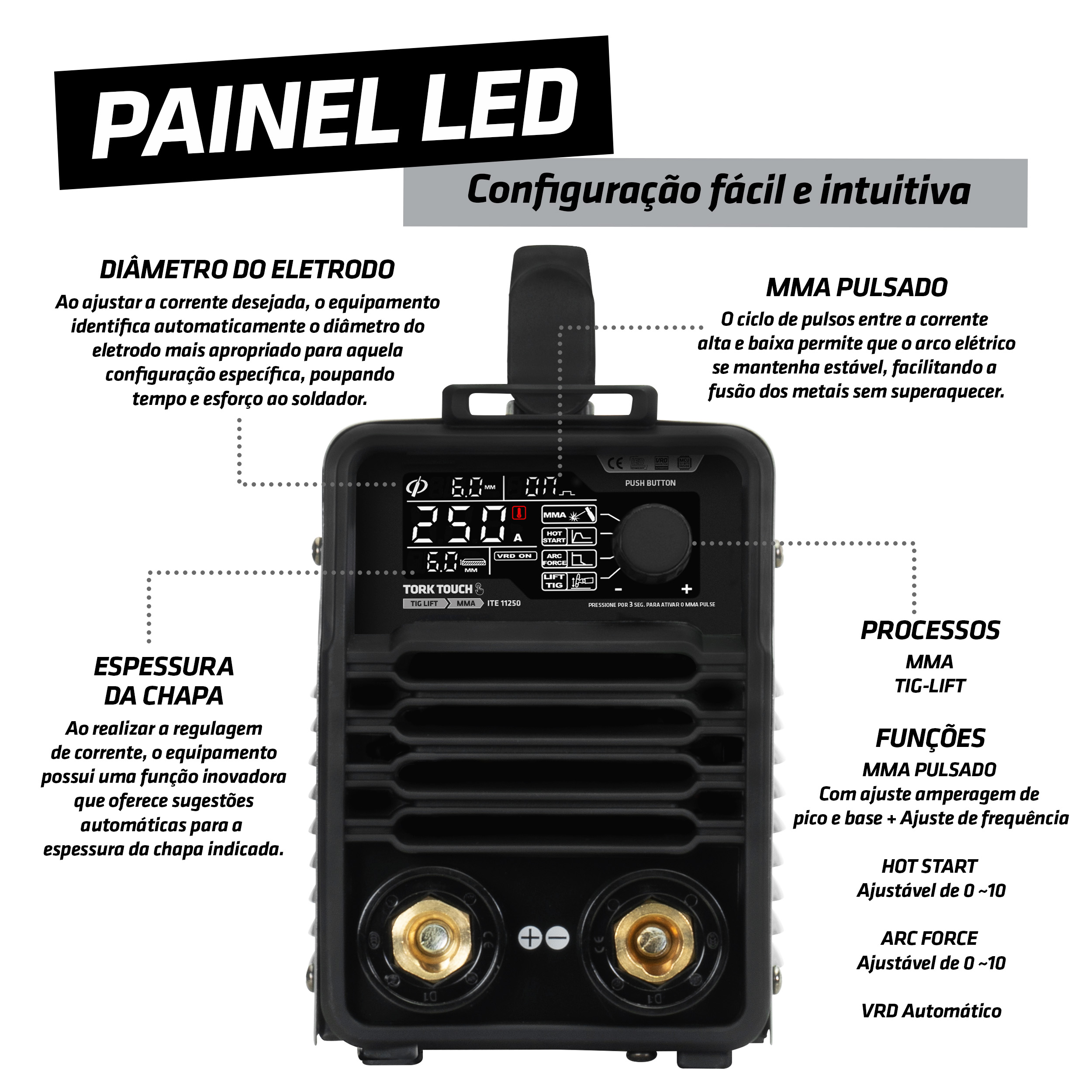 INVERSORA DE SOLDA TOUCH 250A TIG LIFT MMA PULSADO VRD AUTO