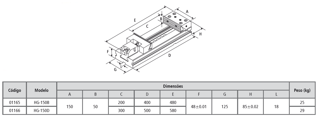MORSA MECÂNICA DE PRECISÃO ABERTURA 300MM HG-150D